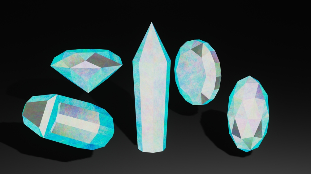 It's a stylized crystal shader with procedurally-generated imperfections and emission, creating something that is hopefully less generic and more colorful. This can work well with either a PBR or NPR environment. If you use this in a scene with a HDR/HDRI background, you will see something interesting on the crystals. Don't forget, you can also modify the material by changing some settings and adding/removing different nodes.