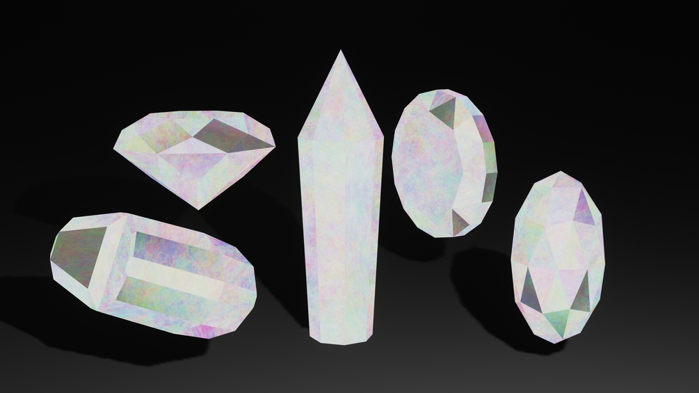 It's a stylized crystal shader with procedurally-generated imperfections and emission, creating something that is hopefully less generic and more colorful. This can work well with either a PBR or NPR environment. If you use this in a scene with a HDR/HDRI background, you will see something interesting on the crystals. Don't forget, you can also modify the material by changing some settings and adding/removing different nodes.